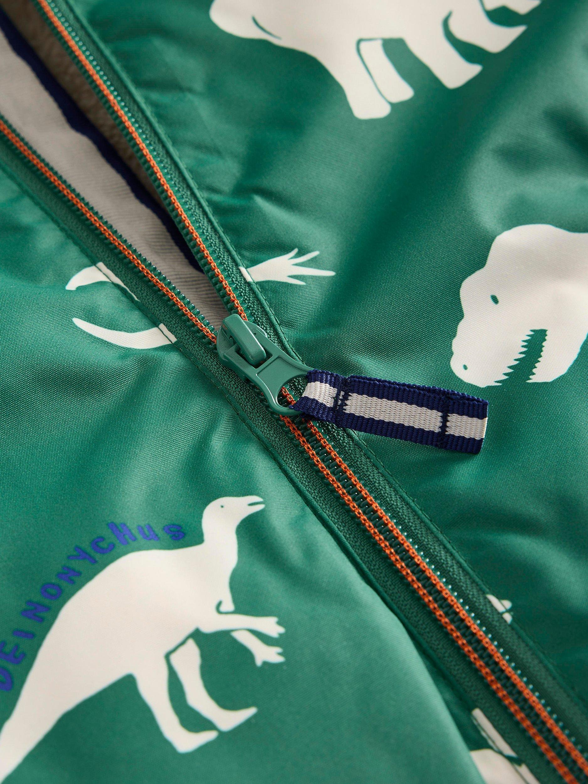 Mini Boden Kids Faux Sherpa Fleece Lined Jacket Spruce Green Dino Very well made.