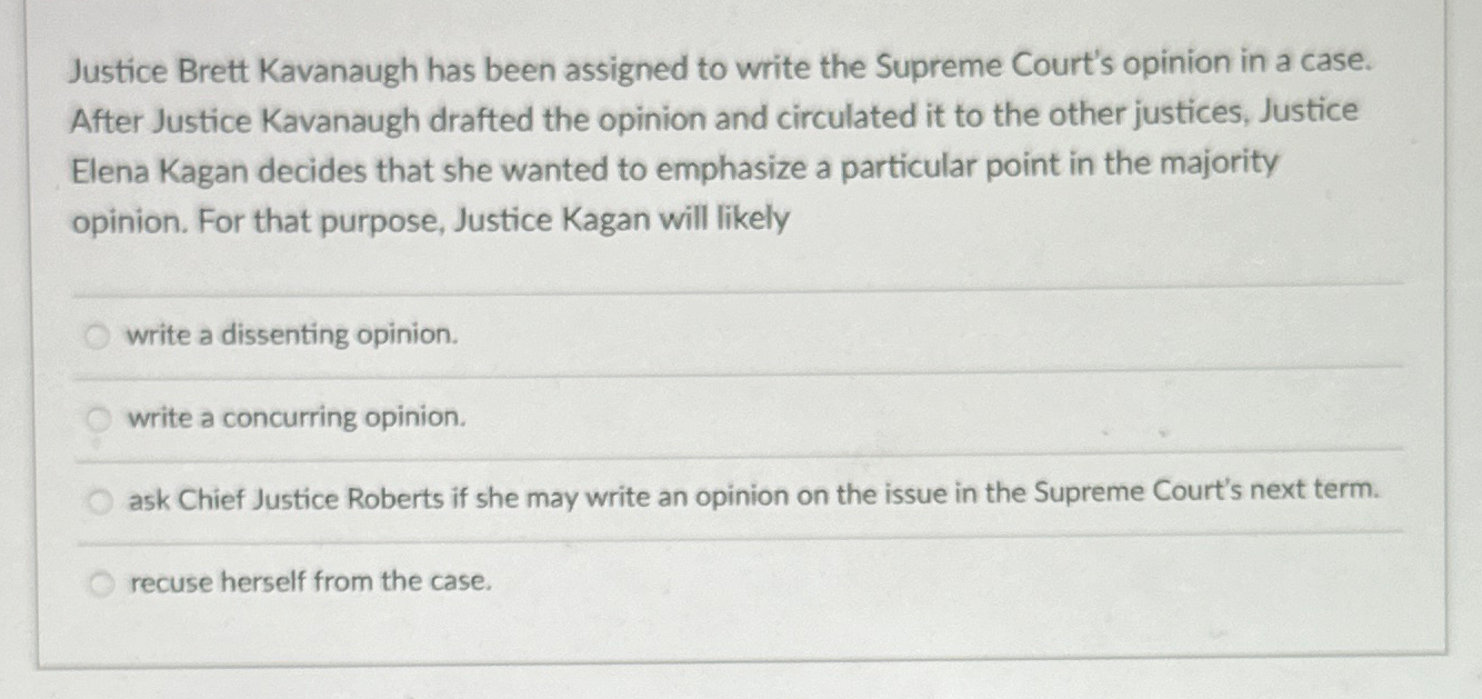 Solved Justice Brett Kavanaugh has been assigned to write Chegg Very well made.