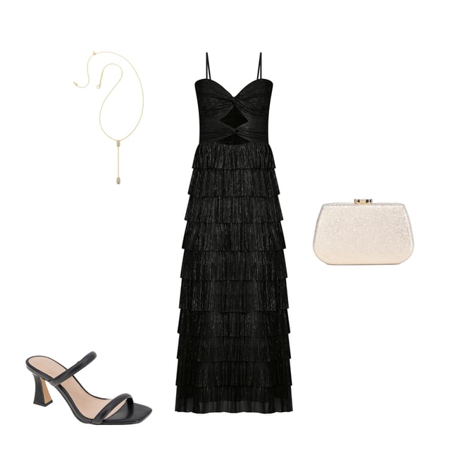 Gianni Bini Grace Metallic Plisse Sweetheart Neck Cut Out Tiered Dress Very well made.