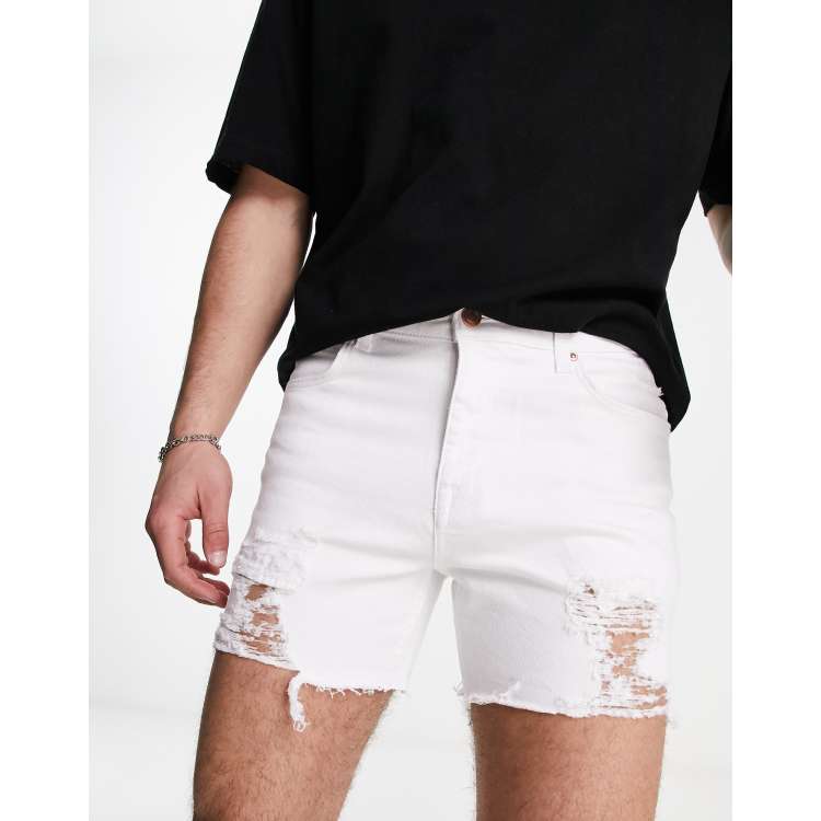 ASOS DESIGN shorter length denim shorts with rips in white ASOS Very well made.
