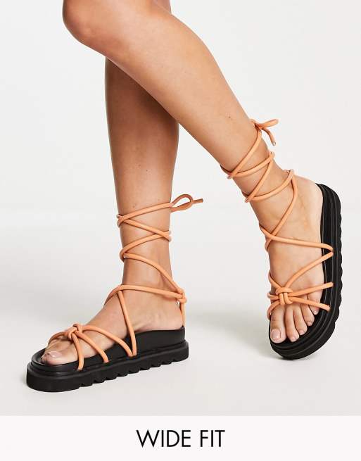 Topshop Wide Fit Poppie tie up chunky sandal in peach ASOS Very well made.
