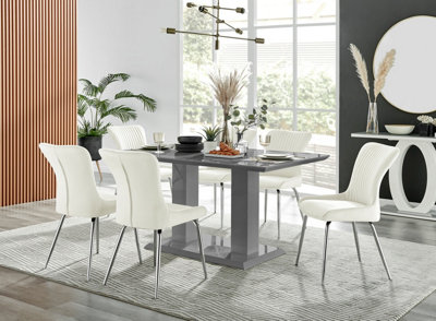 Pivero Grey High Gloss Dining Table and 6 Modern Milan Chairs Very well made.