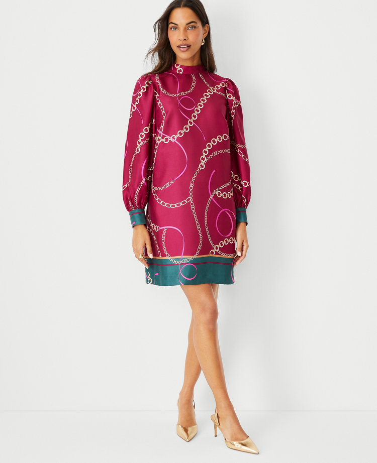 Woven Chain Print High Neck Midi Dress boohoo IL Very well made.