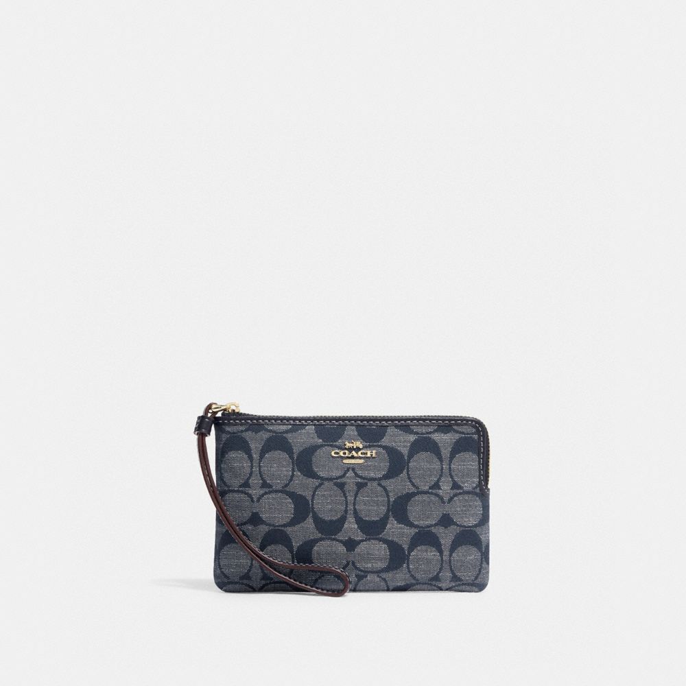 COACH Corner Zip Wristlet In Signature Chambray Very well made.