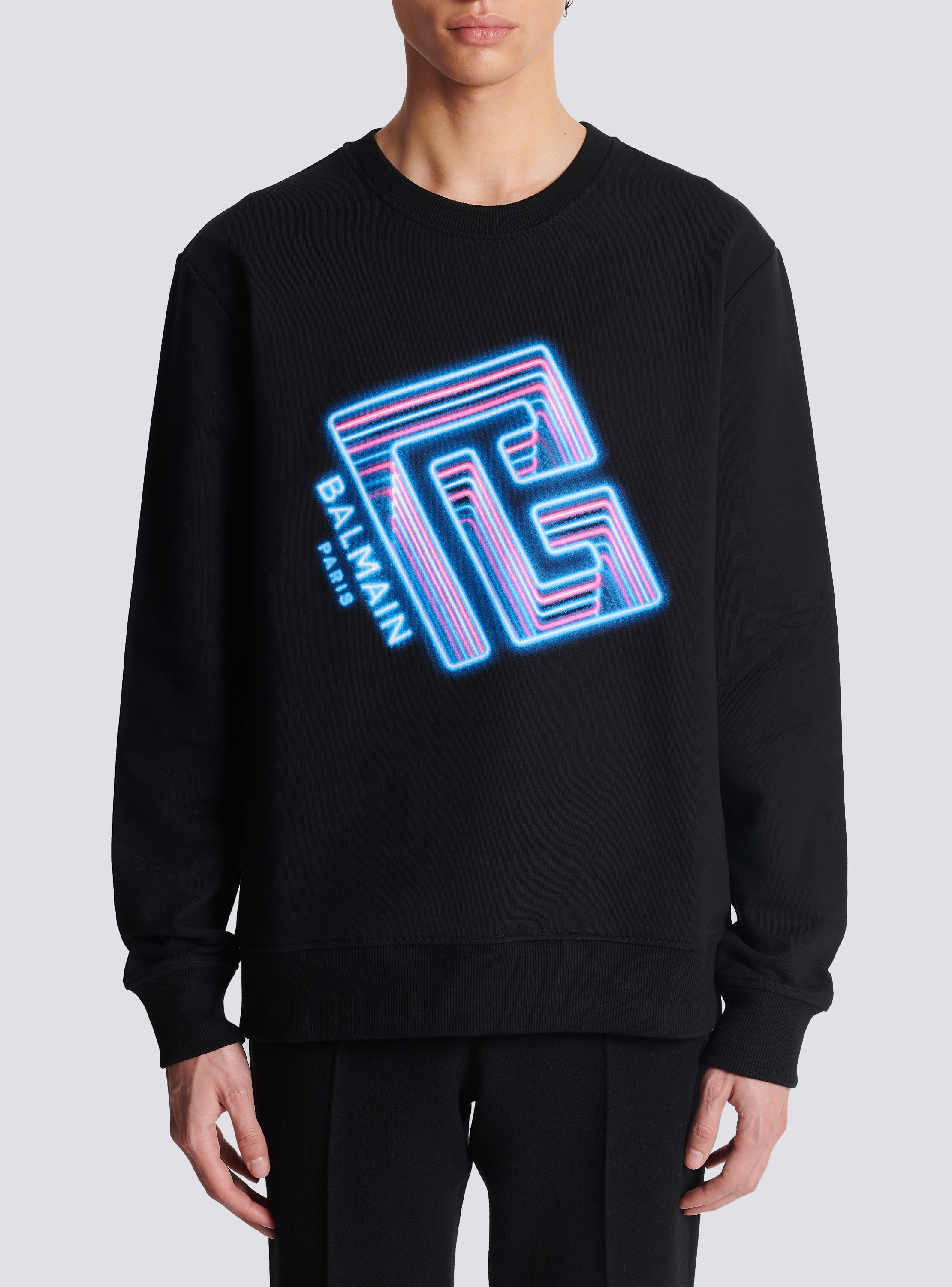 Balmain Paris logo print Cotton Sweatshirt Black Very well made.