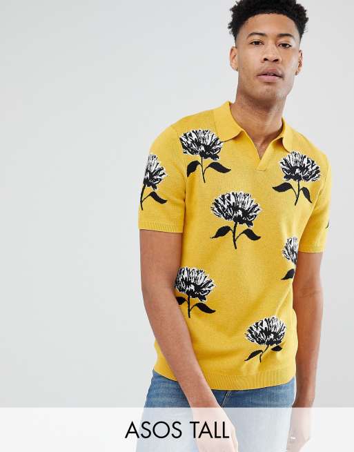 ASOS DESIGN Tall Polo en maille jacquard fleurs avec col revers Jaune moutarde Very well made.
